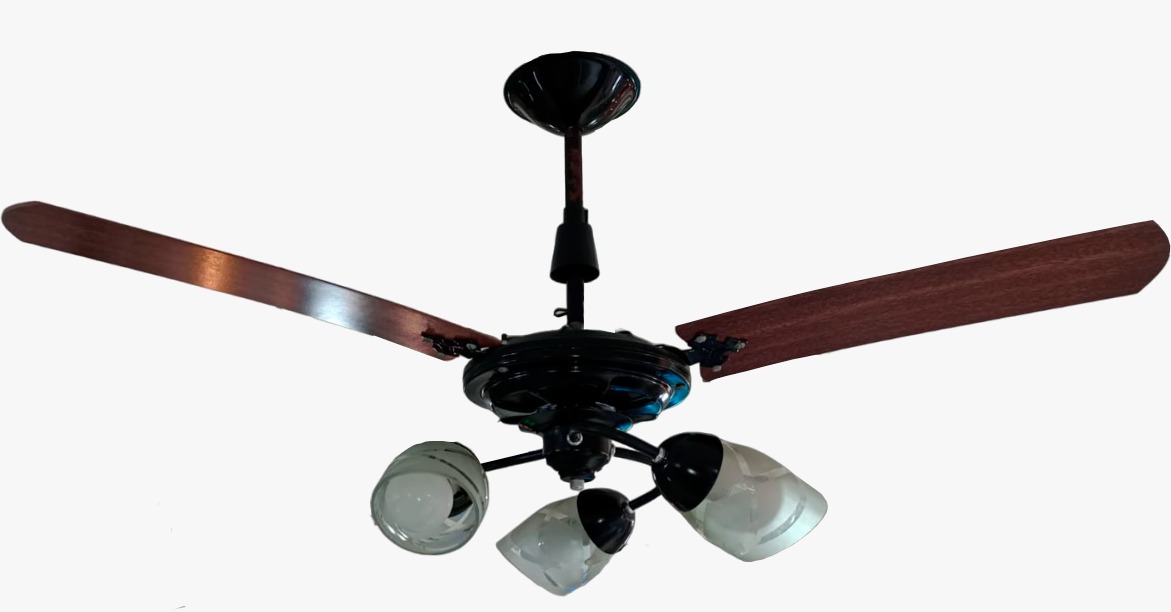 Pás: 3 pás (MDF) laqueadas na cor do ventilador ou mogno.